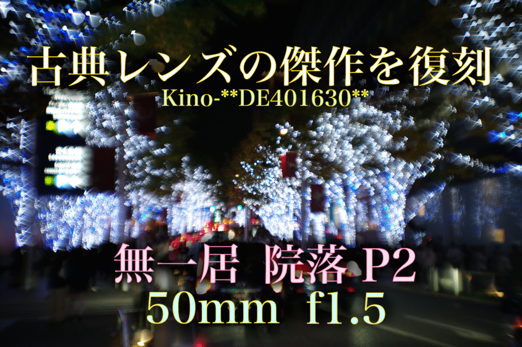 ◆このレンズは、古典レンズの復刻を行なっている「無一居」により制作された写真用レンズです。光学設計は戦前ドイツでPaul Rudolphにより設計されたKino-**DE401630** 50mm f1.5(商標権の関係で特許番号で表記します)、その初期型をトレースしています。その描写は、現代のレンズではありえない独特のボケ、滲み、像の流れを有していて、数ある古典レンズの中でも屈指の名玉と言えます。今回は版権元である無一居より許可をいただき、委託販売という形で25本限定で販売いたします。オリジナルの特性を忠実に再現するため、ガラスはすべてノンコートです。