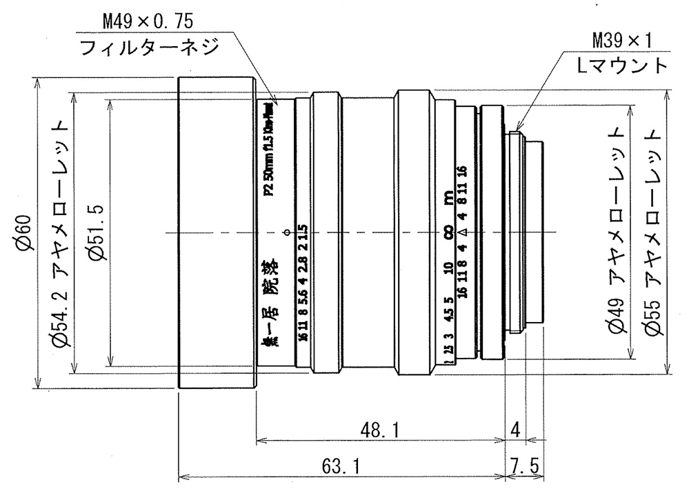 製品仕様:フィルター径49mm、最短撮影距離0.65m、絞羽8枚、ガラスコーティング無し、専用フード付き、重量213g、ライカLマウント距離連動